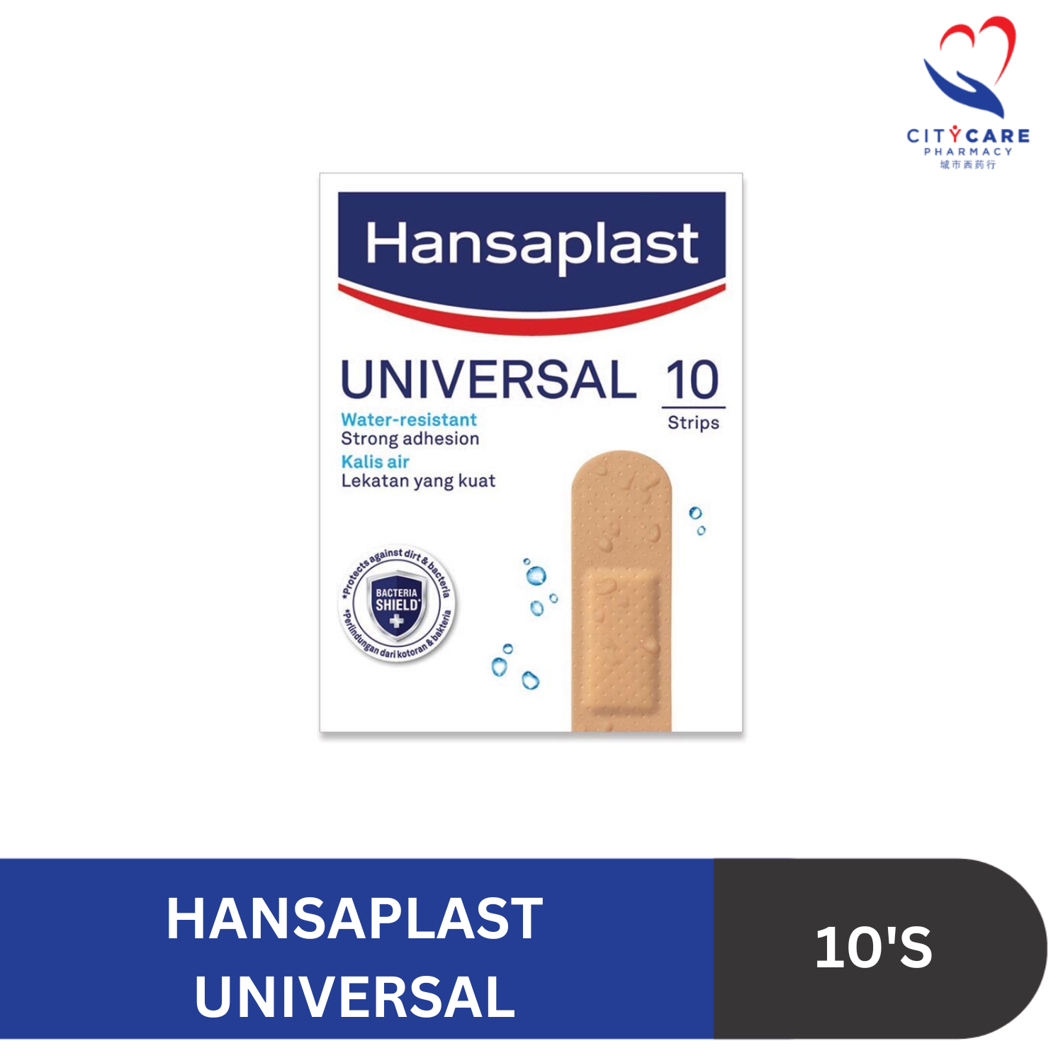 Hansaplast Universal water resistant wound plasters are suitable to cover and protect all types of minor wounds. The material is breathable and is water-resistant. The non-stick wound pad protects and cushions the wound. The strong adhesion ensures that the plaster stays in place.